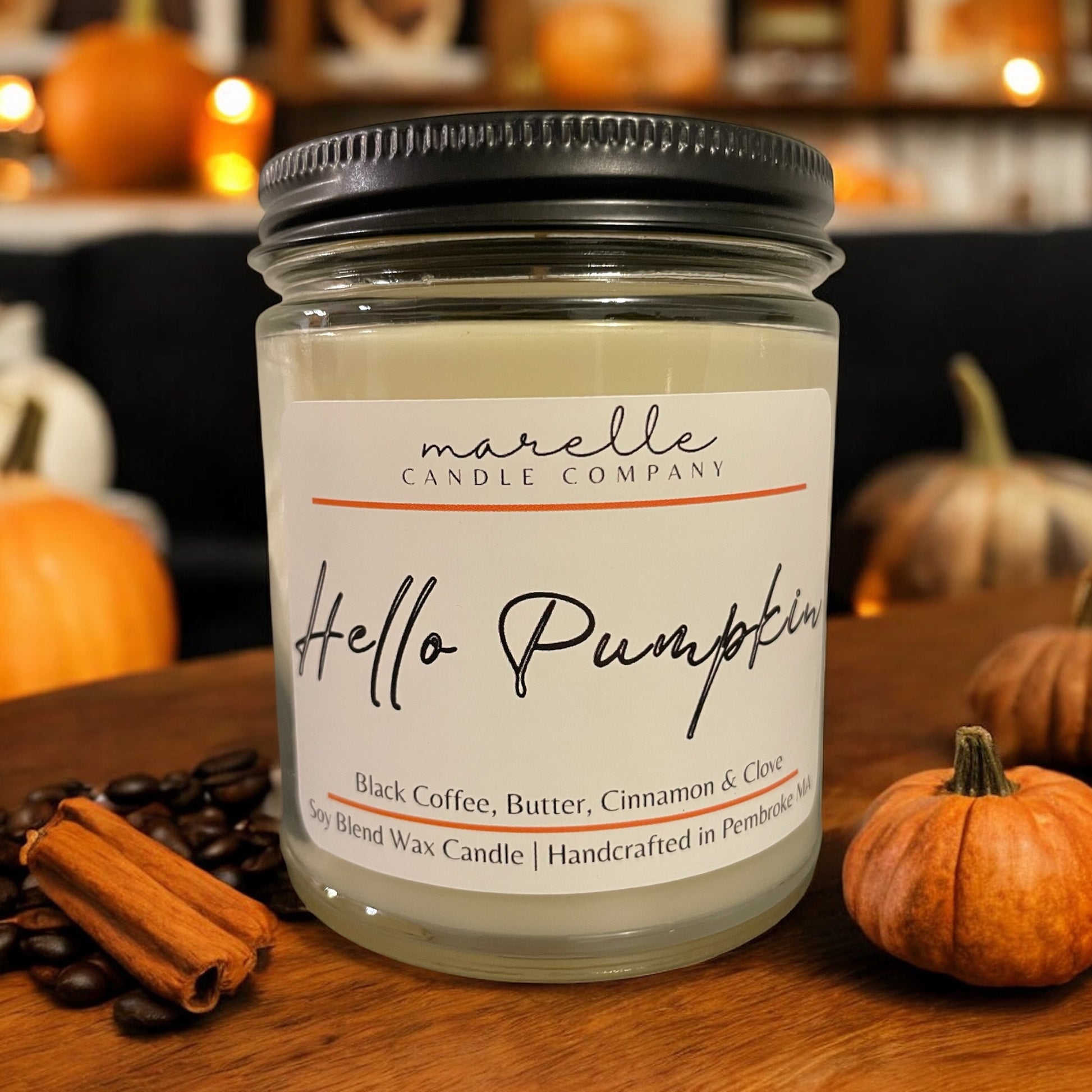 Bring the spirit of autumn into your home with the comforting embrace of "Hello Pumpkin" Soy Candle. As you light this candle, you will awaken your senses as the bold aroma of black coffee fills the air, evoking memories of crisp mornings and the comforting embrace of your favorite coffee shop. The fragrance journey deepens as the creamy essence of butter emerges, adding a velvety smoothness that wraps your surroundings in a layer of comforting luxury.